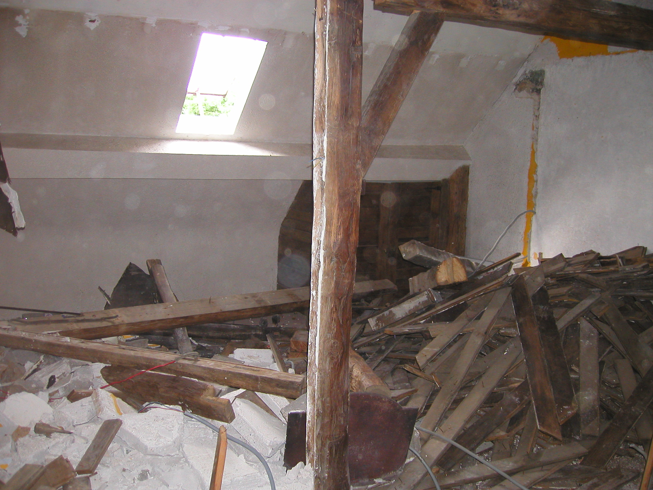 lattes de parquet venant du toit et de la mezzanine