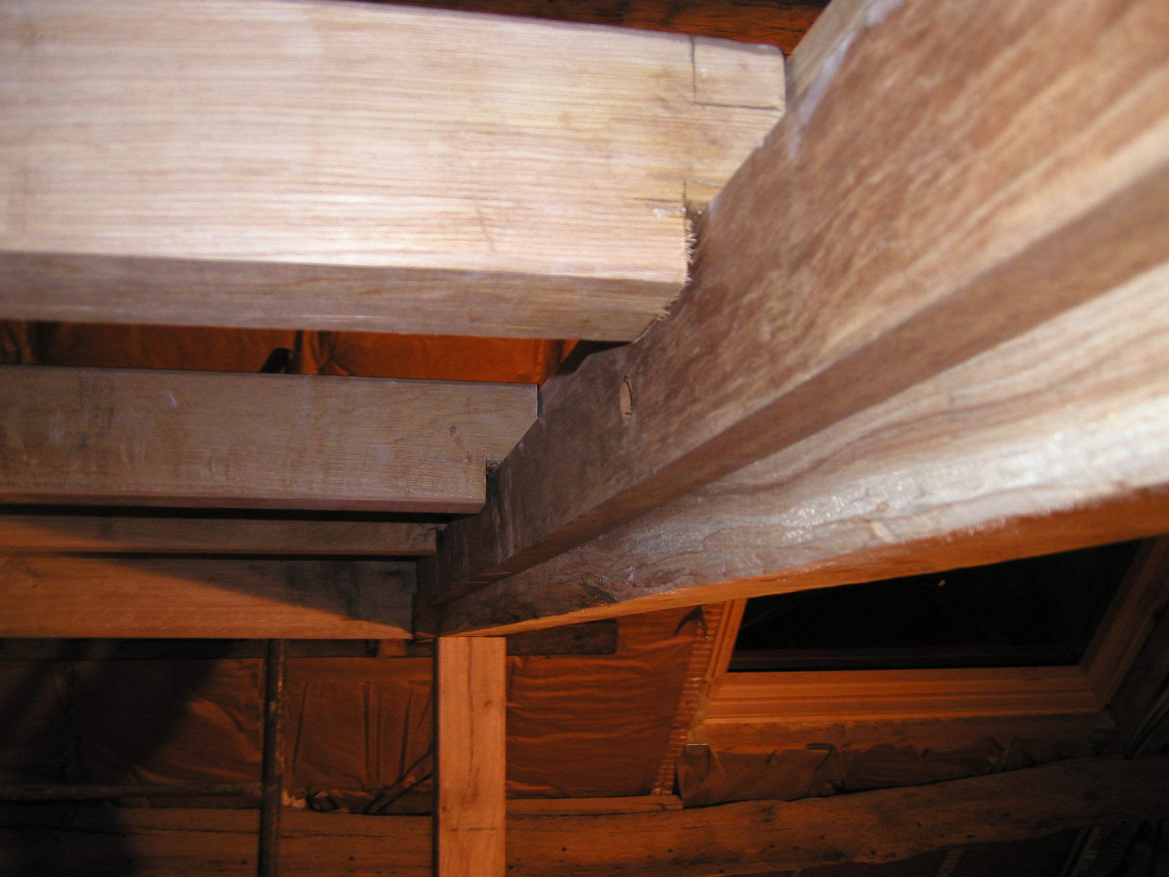 solives en repos sur la latte et fixée dans la poutre frontale par de tirefonds