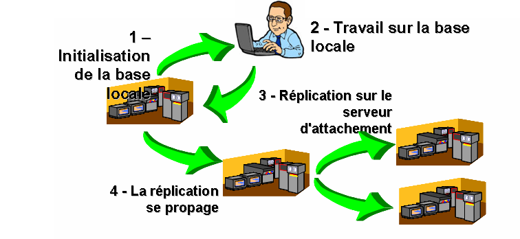 - la réplication : client à serveur pour les usages "nomades"