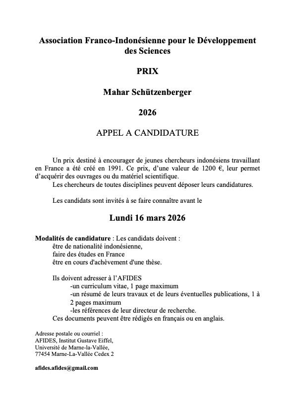 chercheurs indonésiens travaillant en France. Créé en 1991