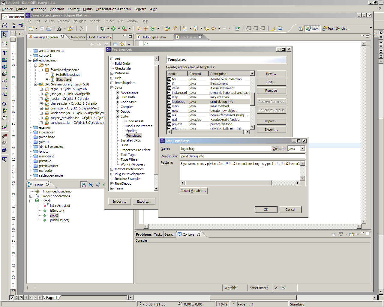 - Ajouter un template (Window/Preference/Java/Editor/Templates/)
