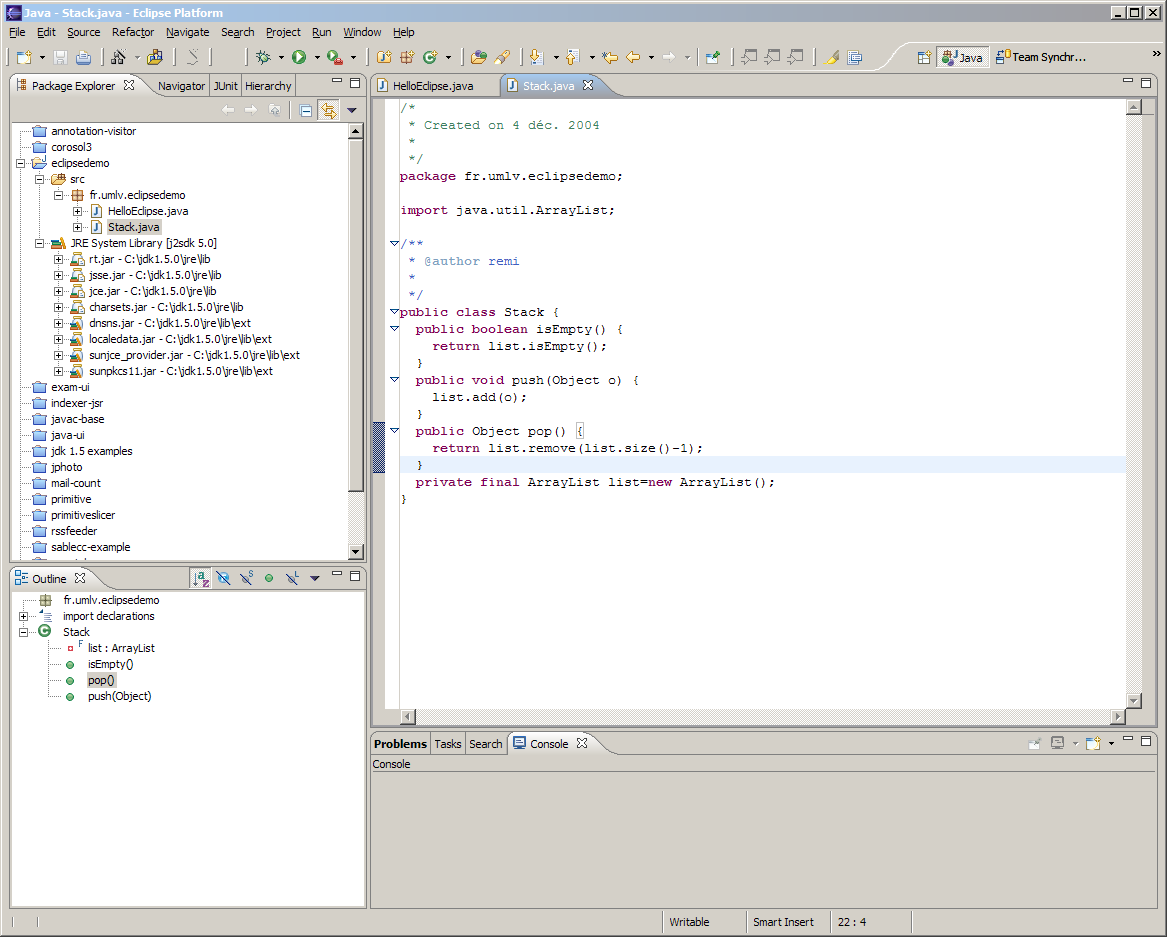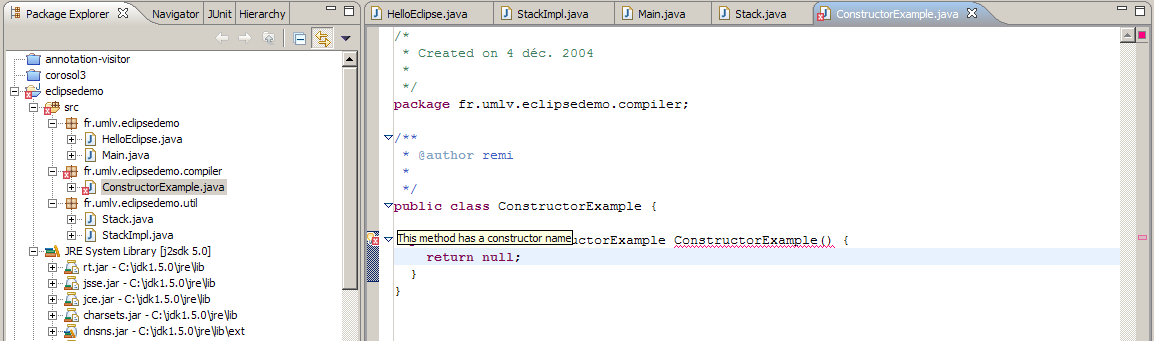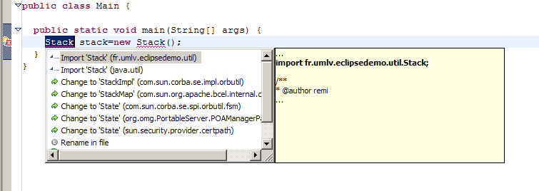 - Dans le même projet, dans le package "fr.umlv.eclipsedemo",