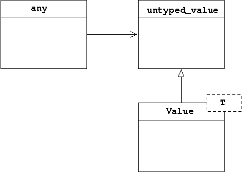 - un contructeur prend en argument une valeur de n'importe quel type pour l'encapsuler dans l'objet créé ;