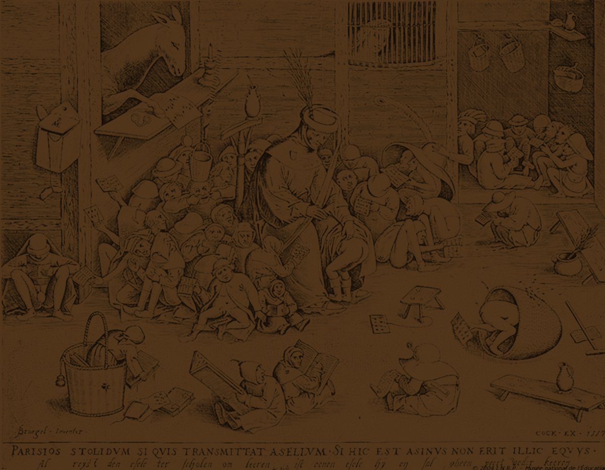 Une classe, gravure sur cuivre, Peter van der Heyden, d'après Peter Brueghel l'Ancien, Cock, 1557 (Musée National de l'Éducation)