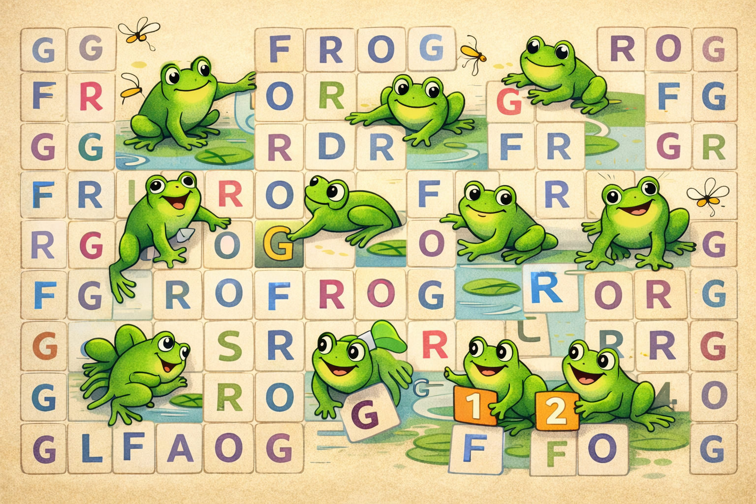 unique mot : FROG, et vous devez compter toutes les occurrences de FROG