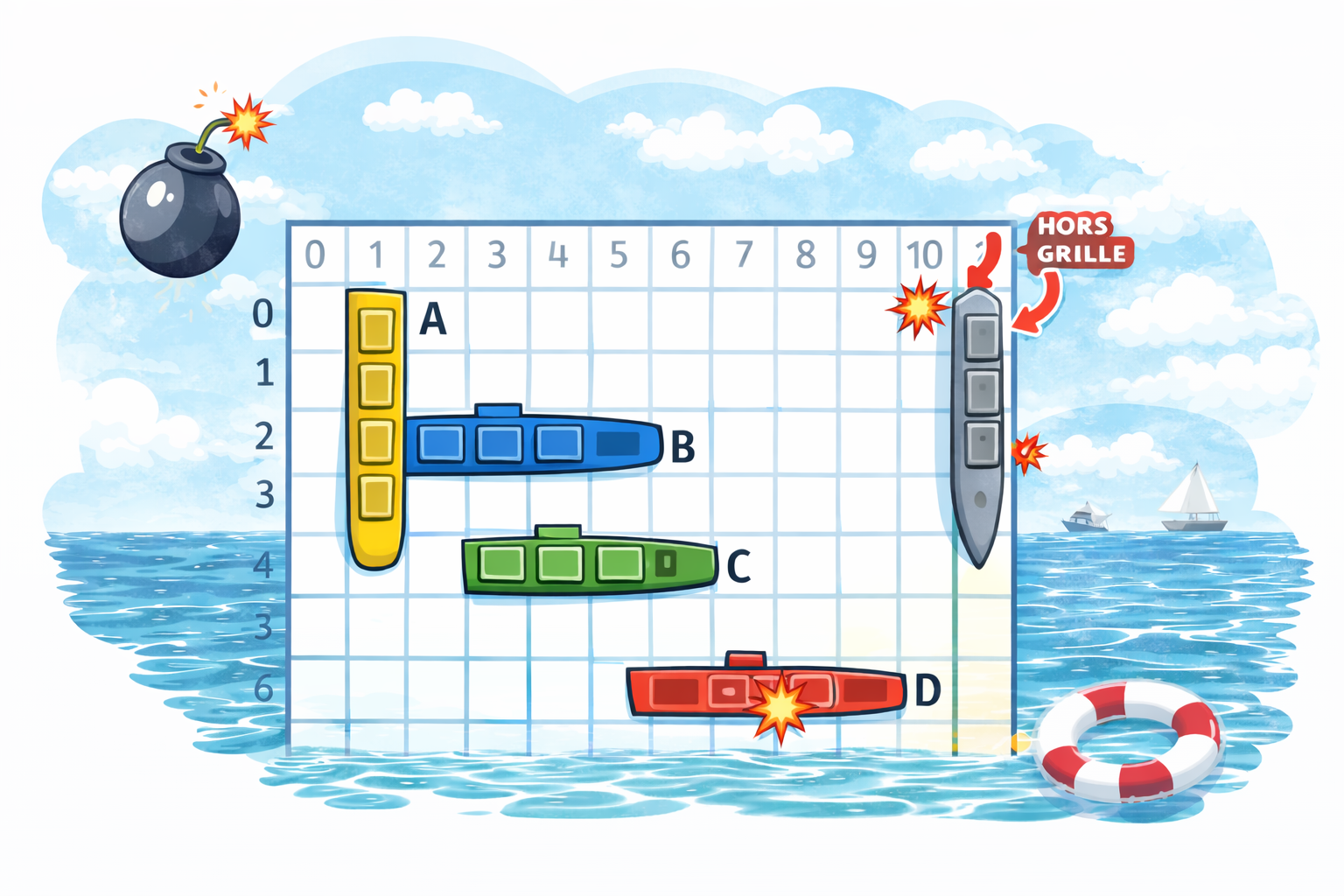 une position en dehors de la grille) et deux bateaux ne peuvent pas